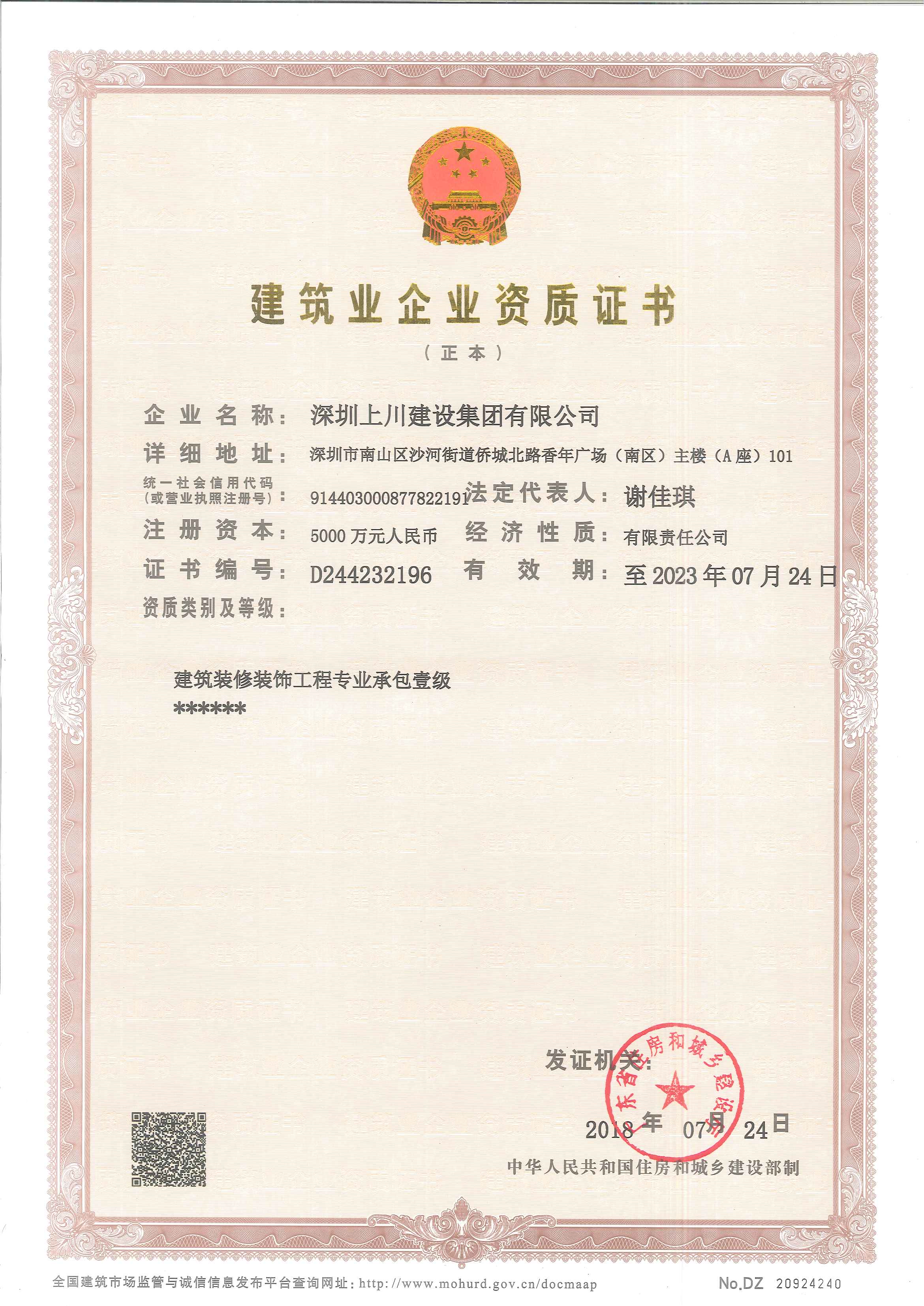 上川建設-建筑裝修裝飾工程資質